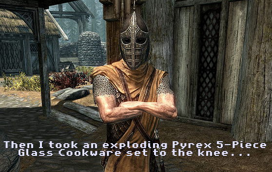 So, is Pyrex determined to fix things and go back to what works, now that a bunch of people have had dishes explode (and, in at least one case, require stitches)? Well, of course not! No, we’re just going to get a warning label, a small aside telling us not to do the sorts of things with these dishes that they are advertised for. Those American Ceramic Society guys have said that “no calculations suggest the soda lime silicate glass would be likely to survive a rapid exposure to boiling water,” and yet this is something that I’m supposed to be putting in a 450° oven?! Well, I guess not, because they also state that Pyrex “does not appear to be adequate for all household cooking”.